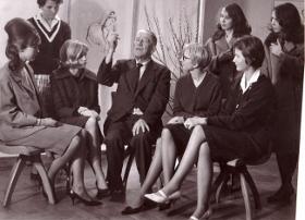Oskar Kokoschka umringt von Schülerinnen des Gymnasiums Poppenbüttel, Hamburg März 1962, 1962