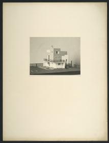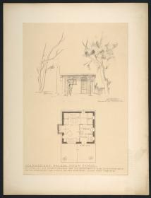 Entwurf für ein Strandhaus an der alten Donau, Perspektive und Grundriß, 1926