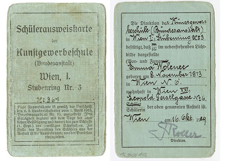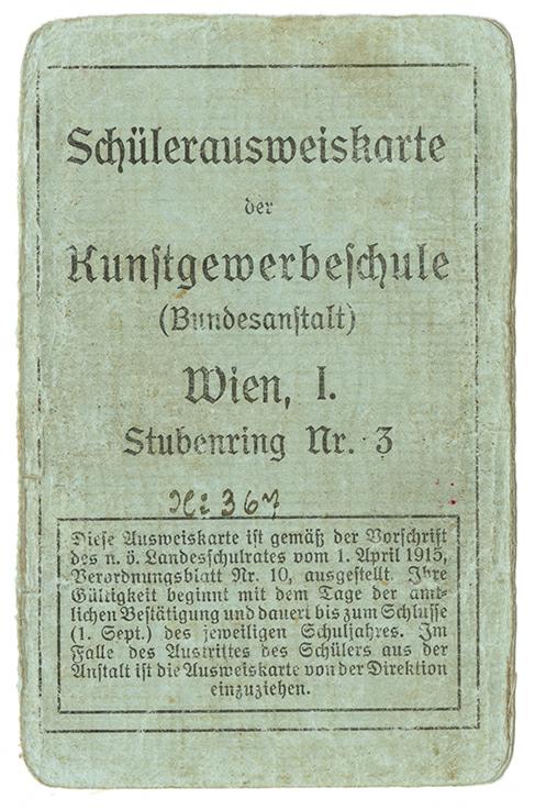 Schülerausweiskarte der Kunstgewerbeschule Wien