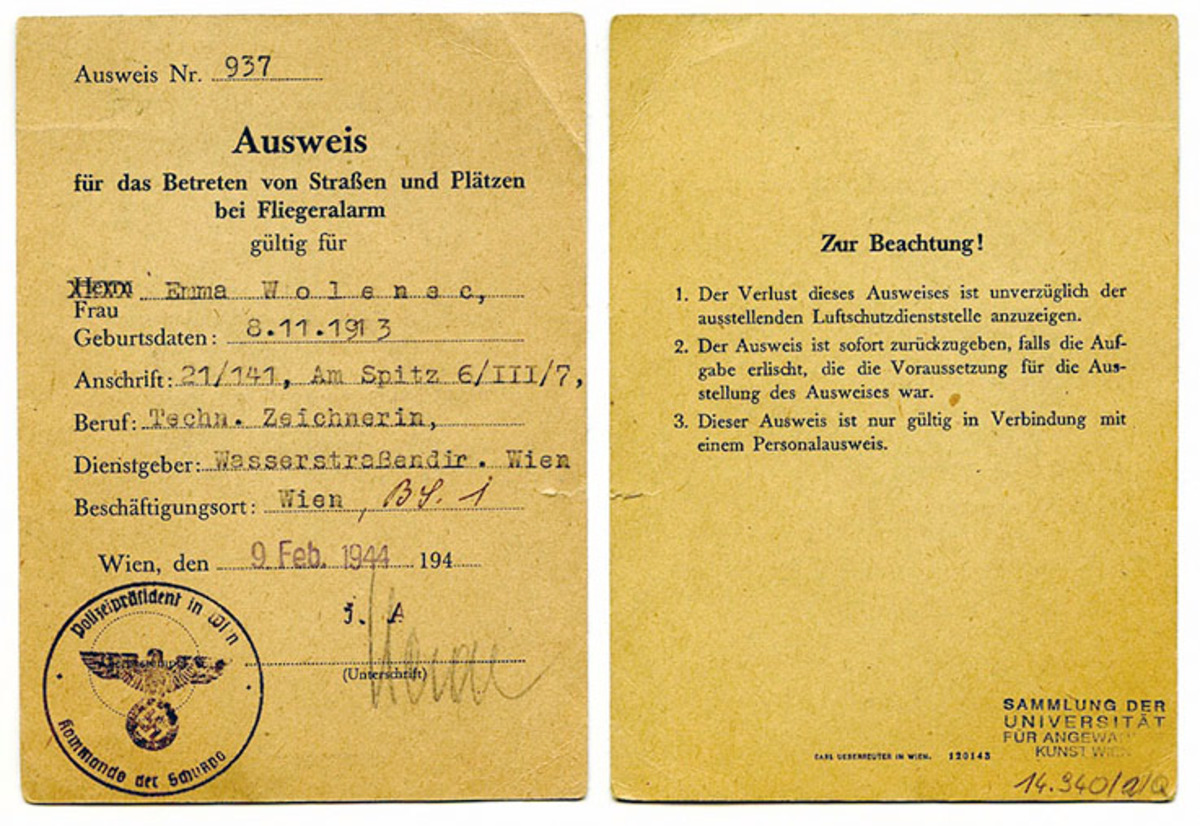 Ausweis für das Betreten von Straßen und Plätzen bei Fliegerarlarm