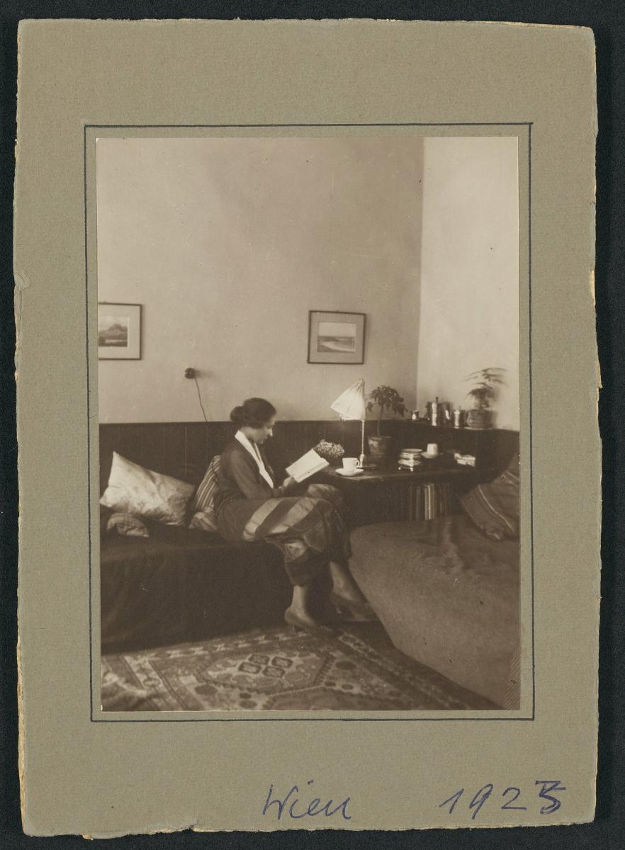 Margarete Lihotzky lesend in ihrem Zimmer in der Wohnung Hamburgerstraße 14