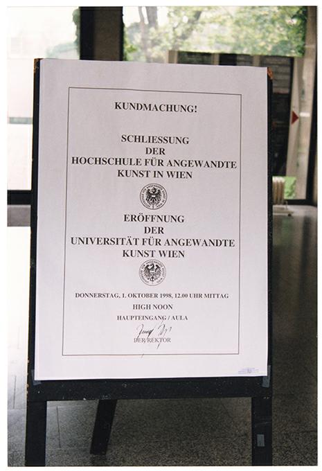 Festakt zur Eröffnung der Universität für angewandte Kunst Wien, Schild