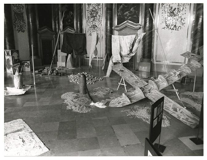 Aufbau der Ausstellung "Die Gegenwart des Produktes Soda", Museum moderner Kunst