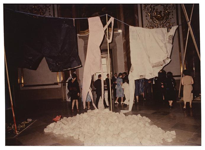 Aufbau der Ausstellung "Die Gegenwart des Produktes Soda", Museum moderner Kunst