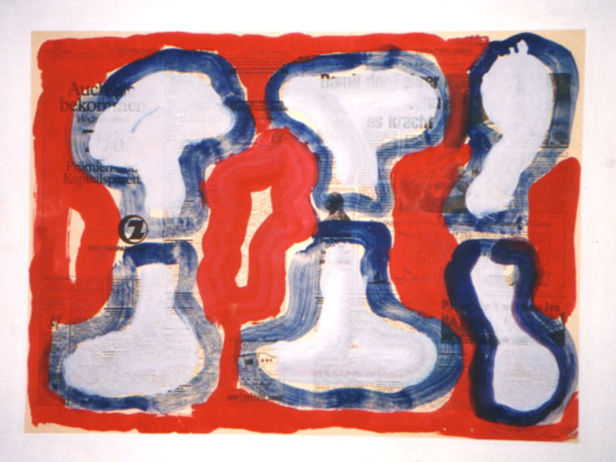 Gouache auf Zeitungspapier, kaschiert auf acrylgrundierter Leinwand