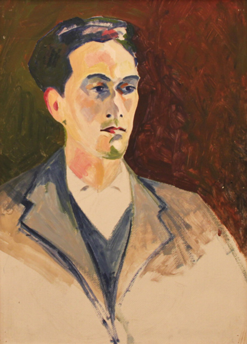 ohne Titel, Junger Mann in blauer Weste und Sakko