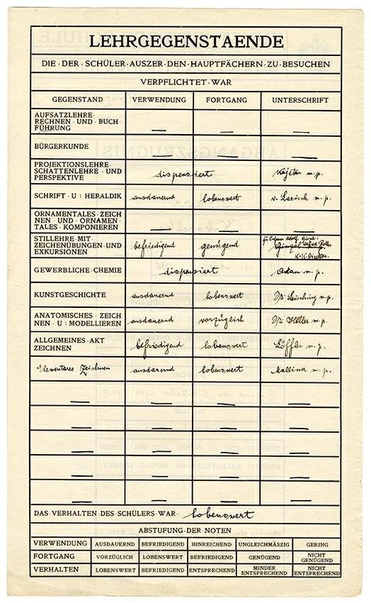 Abgangszeugnis der Kunstgewerbeschule Wien, Konzept