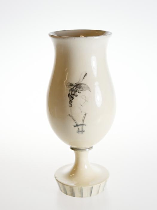 Keramik, weißer Scherben, weiß glasiert, grau bemalt