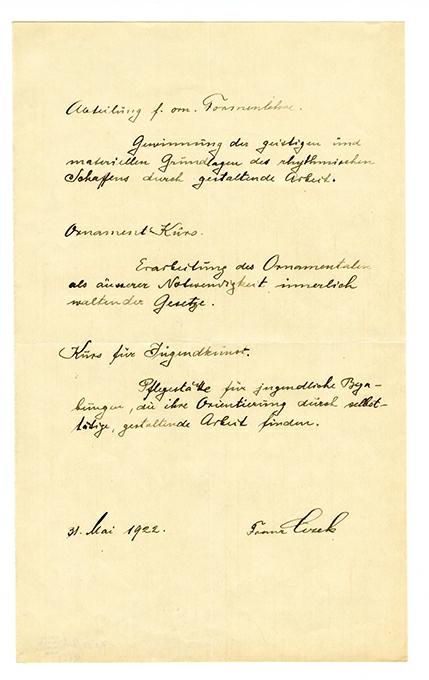 Beschreibung der Unterrichtsfächer von Franz Cizek
