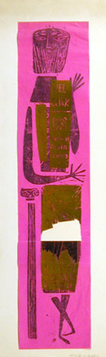 Holzschnitt auf farbigem Seidenpapier, auf Karton montiert