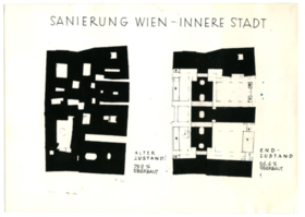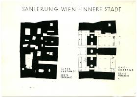 Sanierung Wien - Innere Stadt, Blutgasse, alter Zustand und Endzustand, 1956 Plan undatiert Fotografie