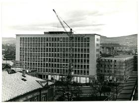 Globus Zeitungs-, Druck- und Verlagsanstalt Wien, Baustellenansicht Kopfbau, 1954 - 1956 Architektur 1955 Fotografie
